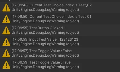 Debug.LogWarning("Test Button Clicked !!!");