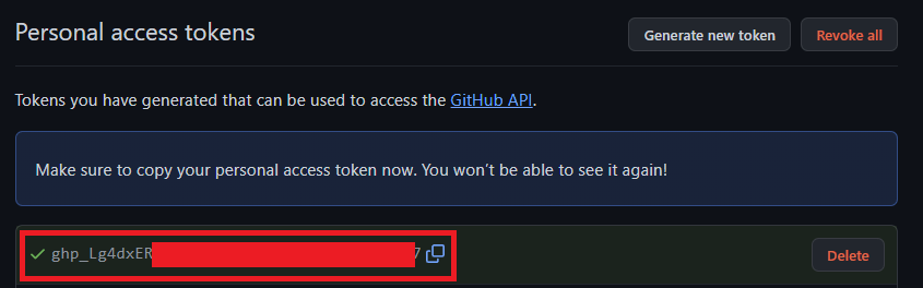 ★생성된 토큰은 따로 본인이 관리하는 노트에 기록 필요★