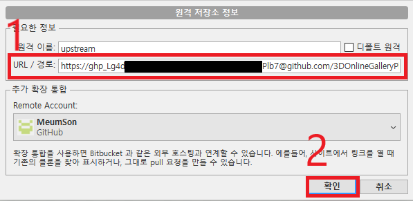 수정값: https://생성한 토큰 값@github.com/계정/레포지토리
