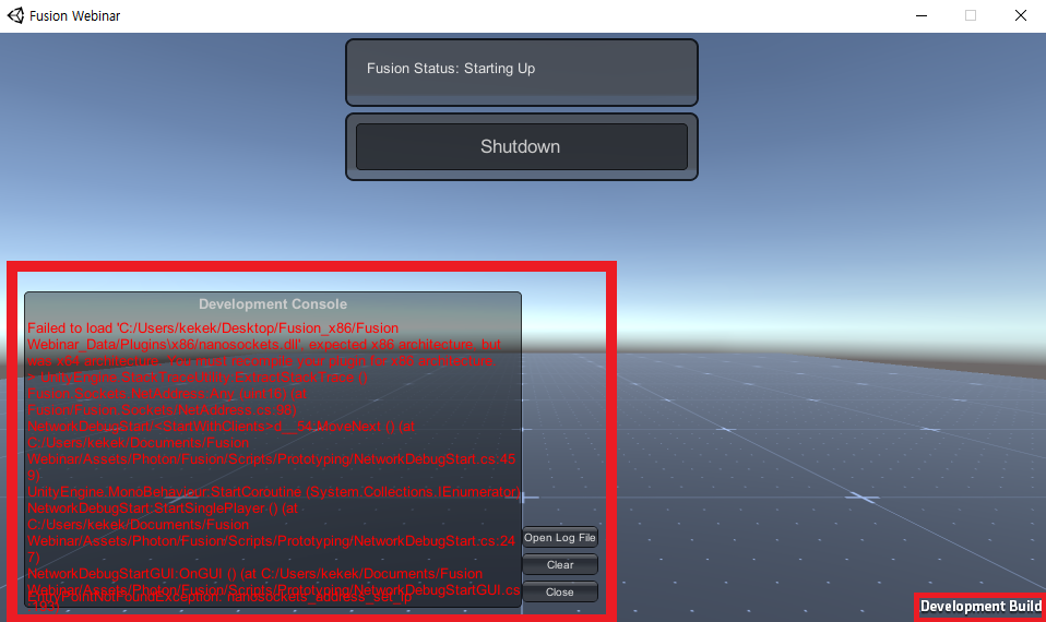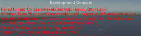Failed to load 'C:/Users/kekek/Desktop/Fusion_x86/Fusion Webinar_Data/Plugins\x86/nanosockets.dll',